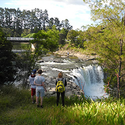 Karangahake Gorge; Mt. Maunganui beach and mountain; plant trees or dune grasses; explore and study mudflats; kayaking, blokarting, sailing or horse-trekking; kiwi fruit orchard tour and tasting; virtual beehive tour and tasting; farm show; cable car and luge; Hot swim; geysers and mudpools; Maori culture and concert; kiwi bird; Huka Falls; jet boat ride; Hike Tongariro National Park; skydive, bungy jump, white water raft or horse-trek; Waitomo glow worm caves; Hobbiton movie set; Auckland city tour; Mount Eden volcano; Tiritiri Matangi Island wildlife sanctuary